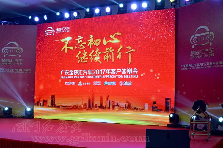 2017年11月11日,广东金莎汇汽车迎来了一周年生日。今天,在此举行隆重客户答谢会!现场布置喜庆,舞台灯光绚丽,众多嘉宾欢聚一堂,气氛格外热烈。晚会节目精彩分呈,高潮迭起,客户答谢奖品丰厚。活动结束,得到客户高度评价!